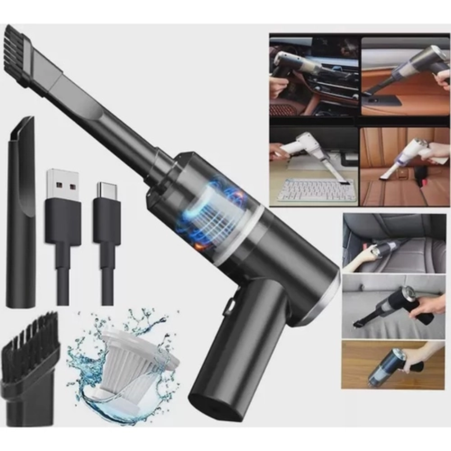 Mini Aspirador de Pó Powerclean para Casa Carro Portátil Prático Uso dia a dia Com Bateria Recarregável USB Design Compacto