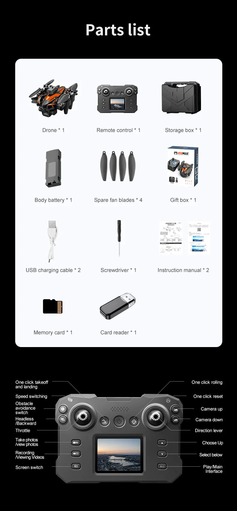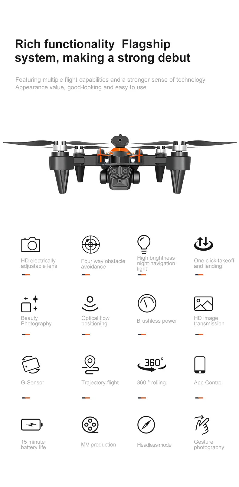 Parâmetros de configuração do produto: câmera dupla 8K HD/posicionamento de fluxo óptico/evitação de obstáculos/câmera elétrica ajustável
